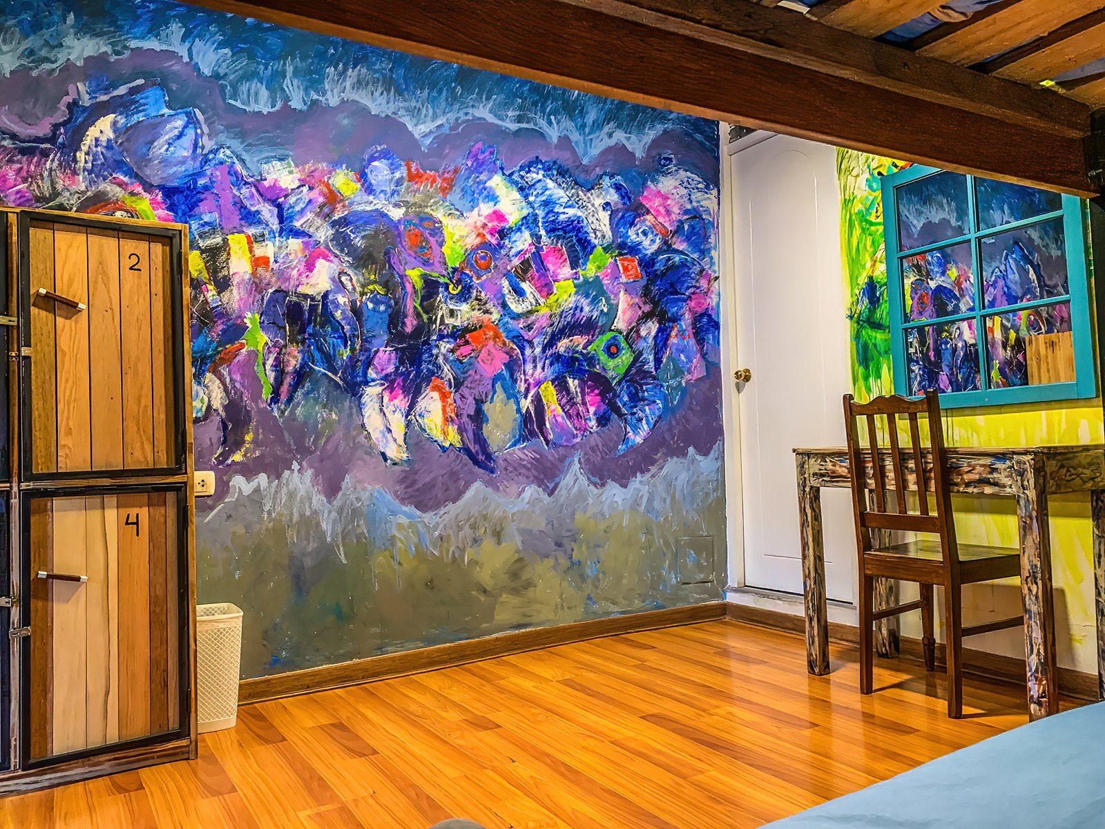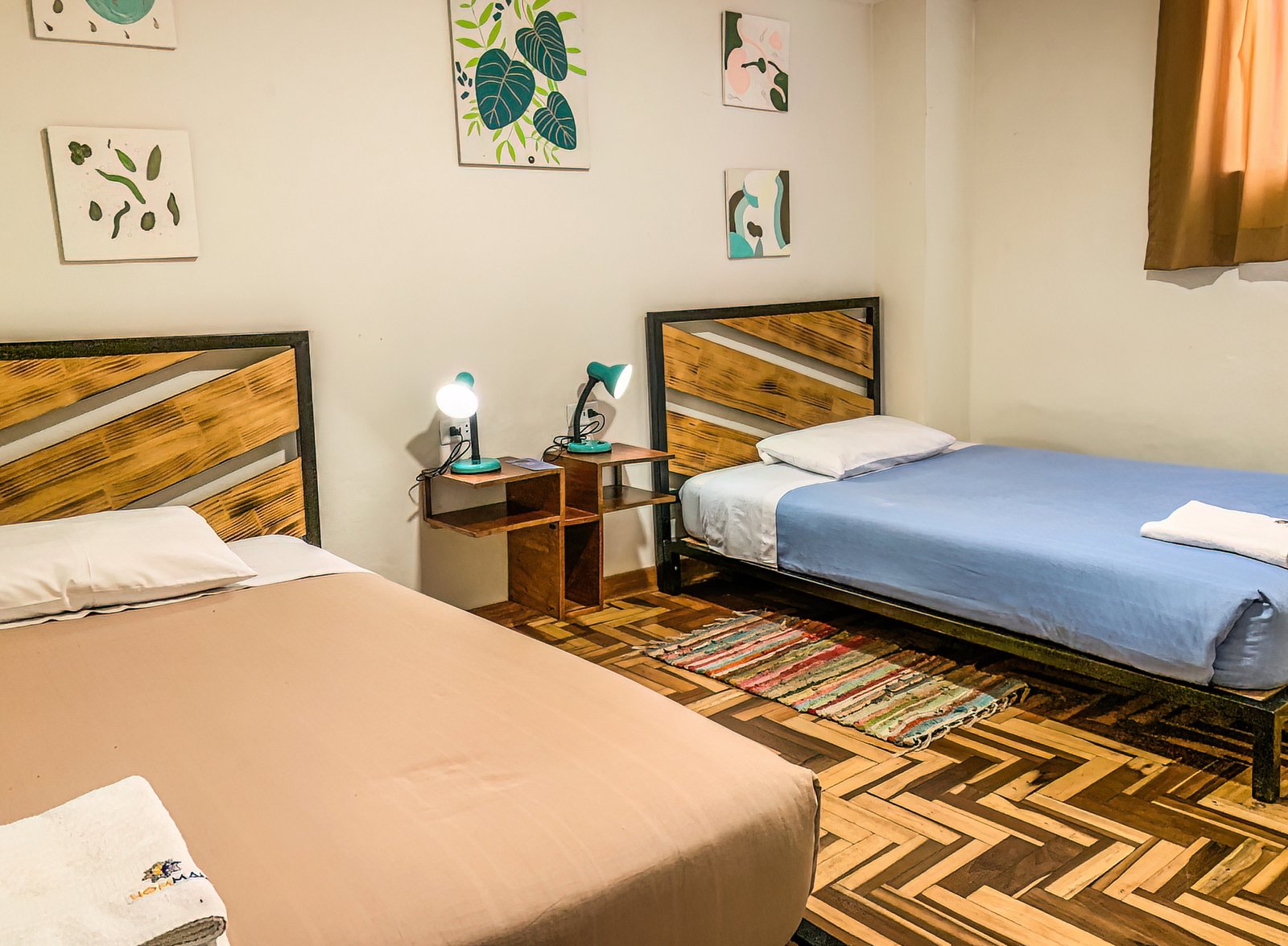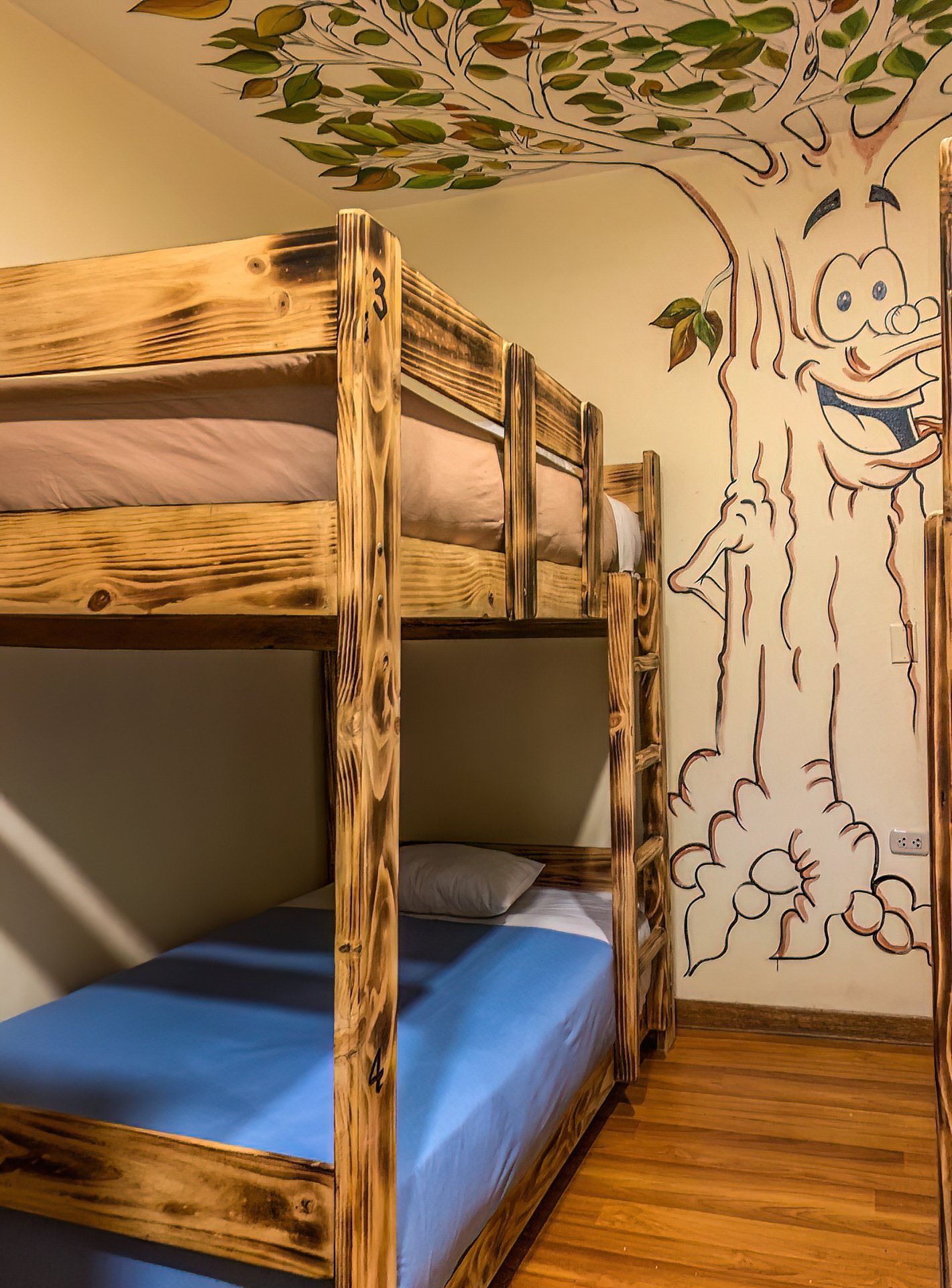 Nuestra habitación compartida ofrece un equilibrio perfecto entre funcionalidad y entretenimiento. Ocho camas confortables, complementadas con lockers individuales para almacenamiento seguro.