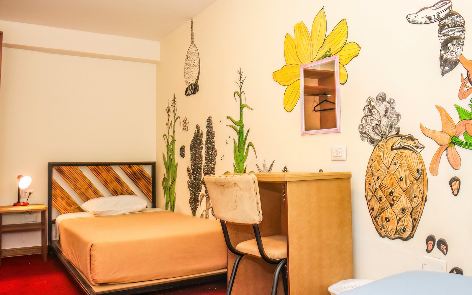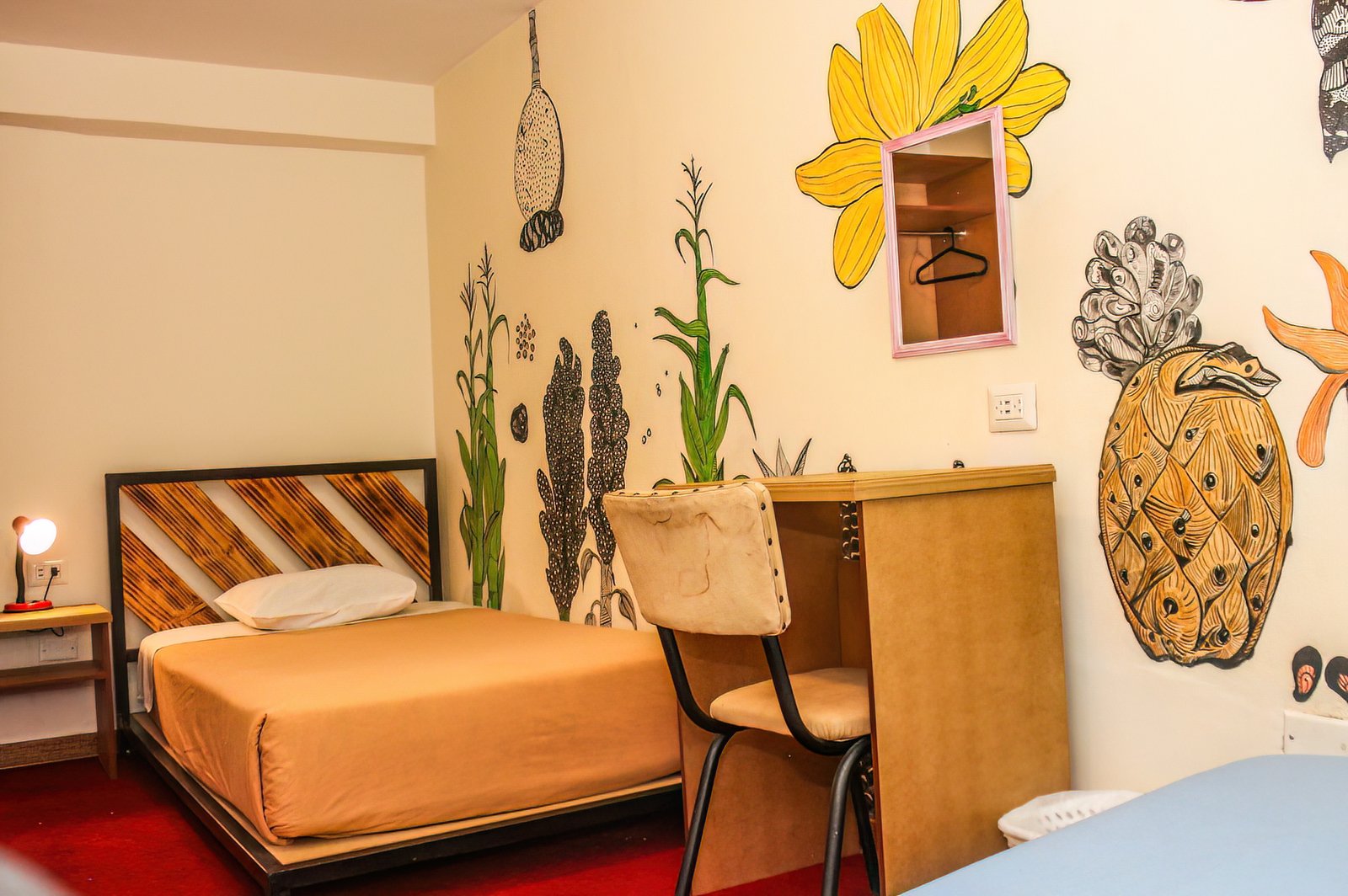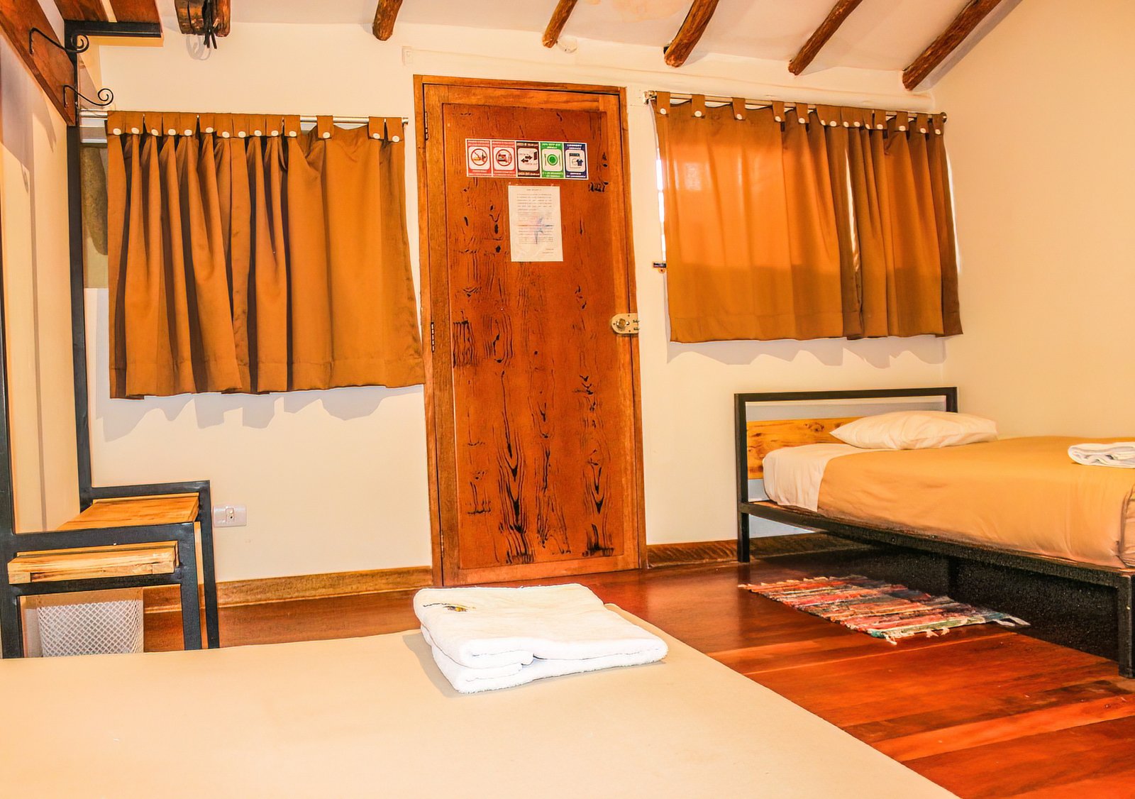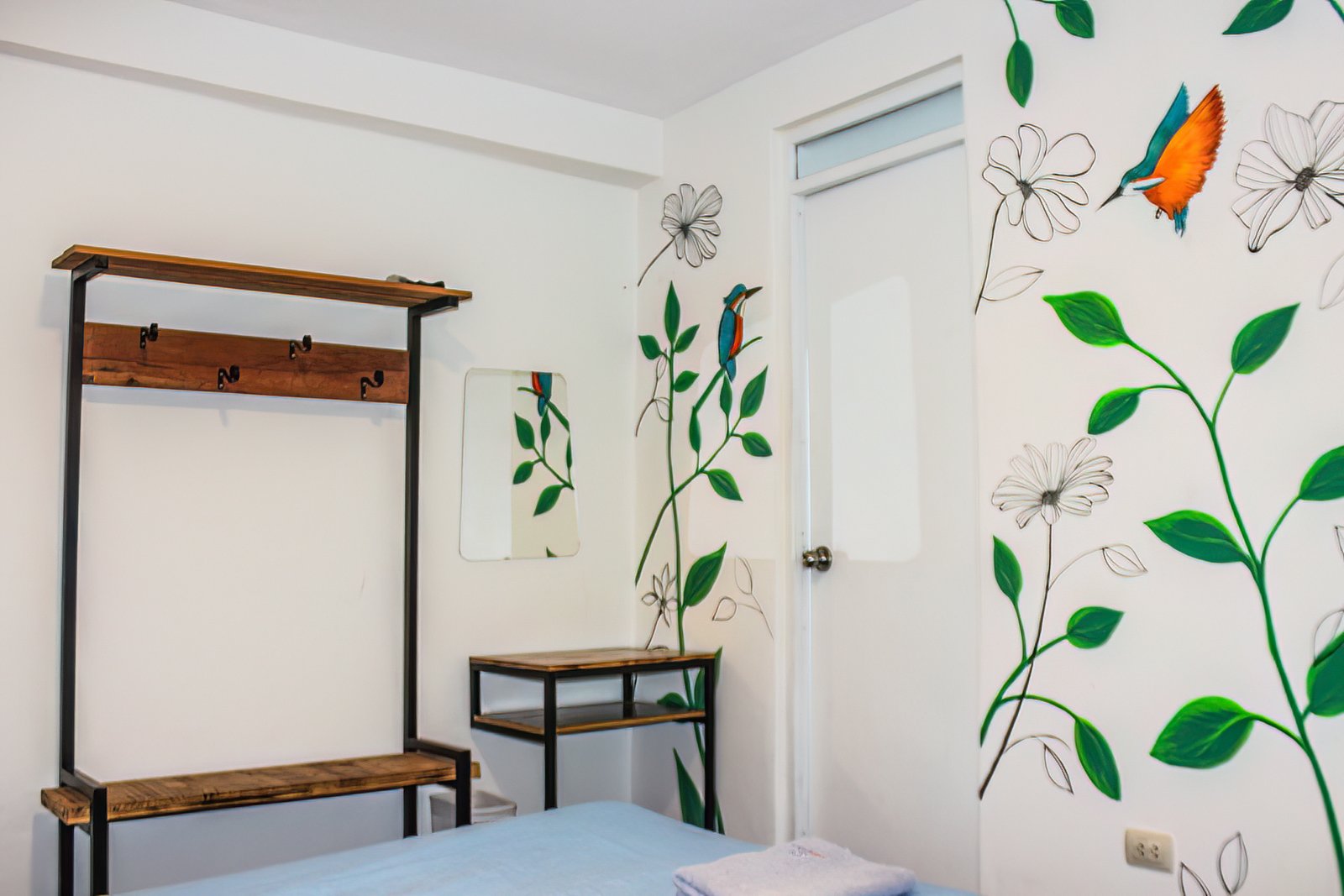 Nuestra habitación compartida ofrece un equilibrio perfecto entre funcionalidad y entretenimiento. Ocho camas confortables, complementadas con lockers individuales para almacenamiento seguro.