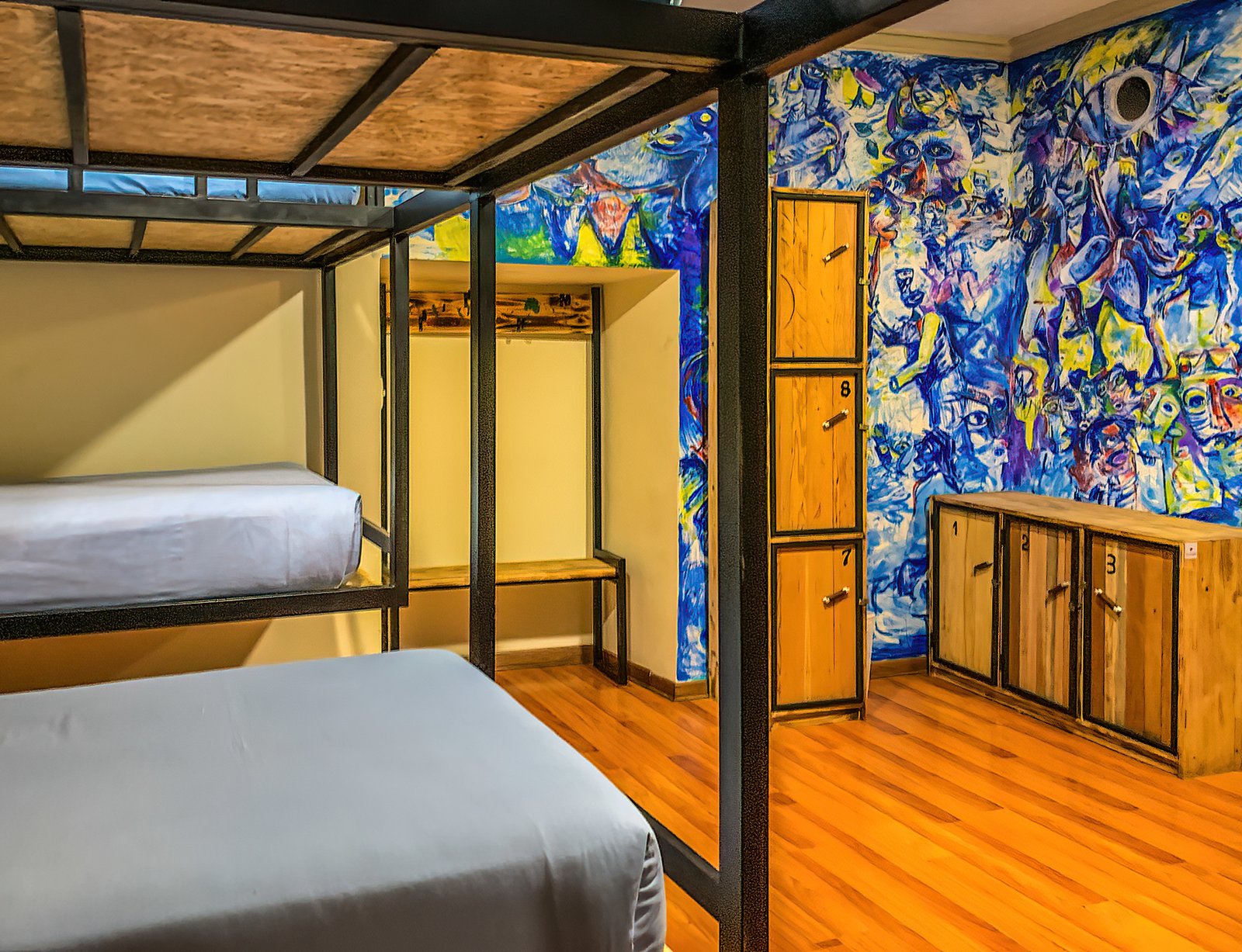 Establezca su base de operaciones en nuestra habitación compartida, diseñada para el viajero explorador. Ocho camas individuales con lockers personales para mayor comodidad.